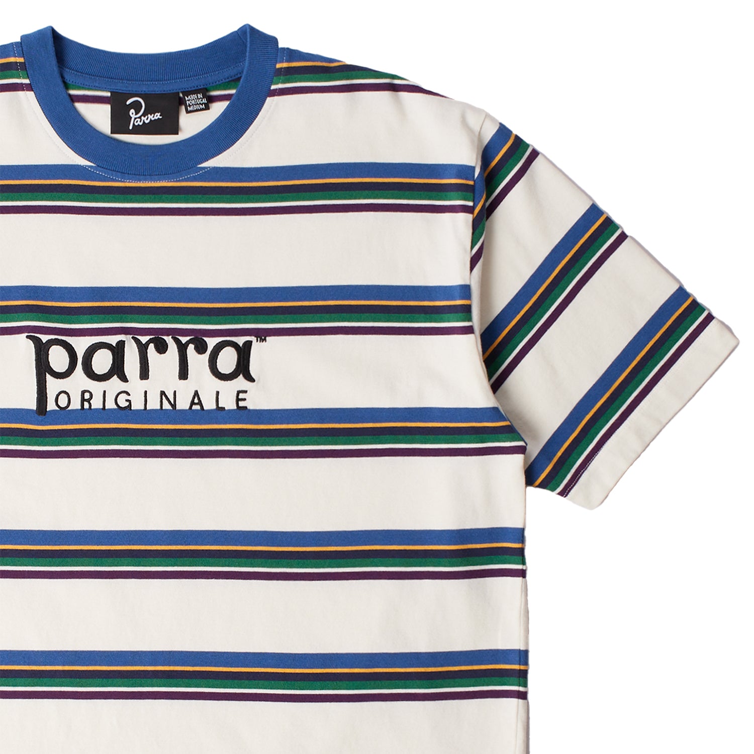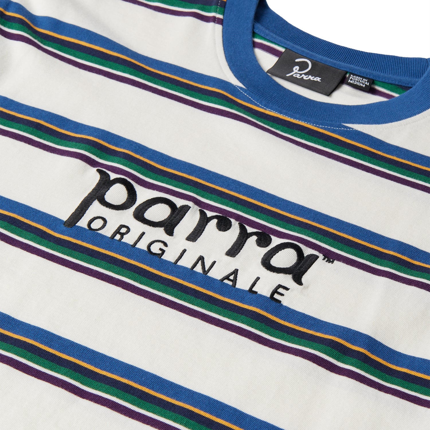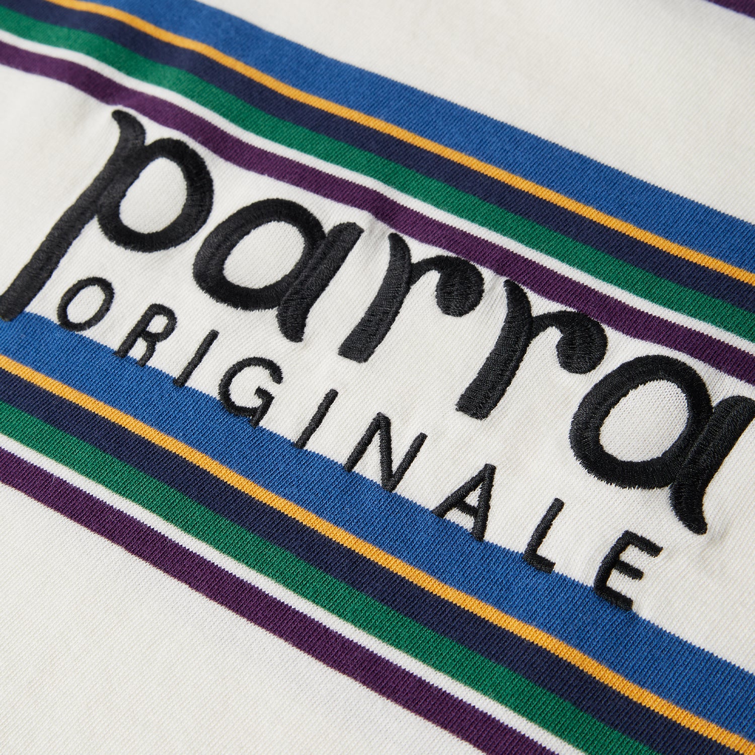 Engineered woven stripes in contrasting colors with Parra originale logo as an embroidery on the chest.