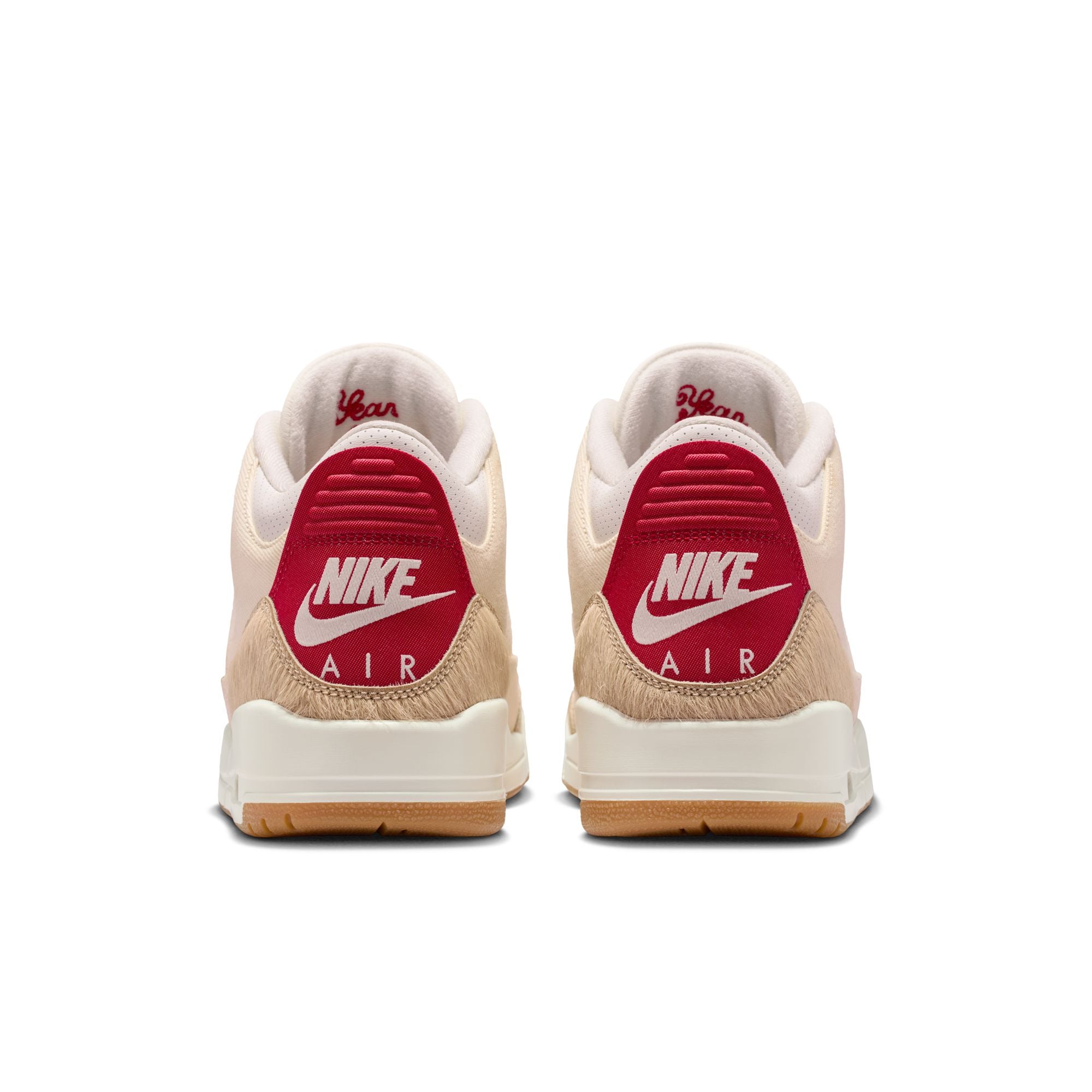 Jordan and Levi’s® reunite to deliver a fresh spin on the AJ3. Ring in the Lunar New Year in kicks that pair an Ecru denim upper with Sail pony hair accents. A special Year of the Horse chainstitch at the interior tongue is complemented by a red insole, while Levi’s®’ dollar bill graphic and Red Tab completes the look.