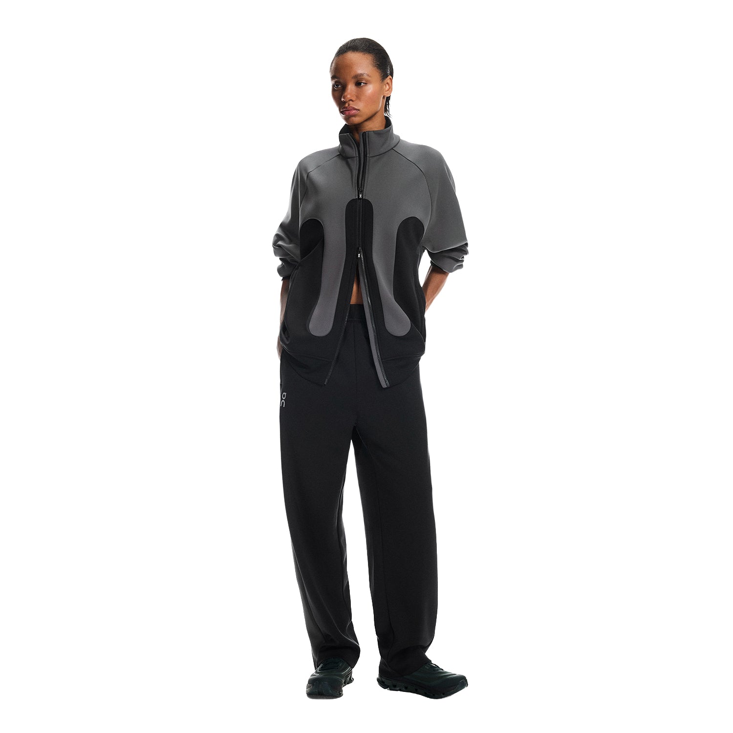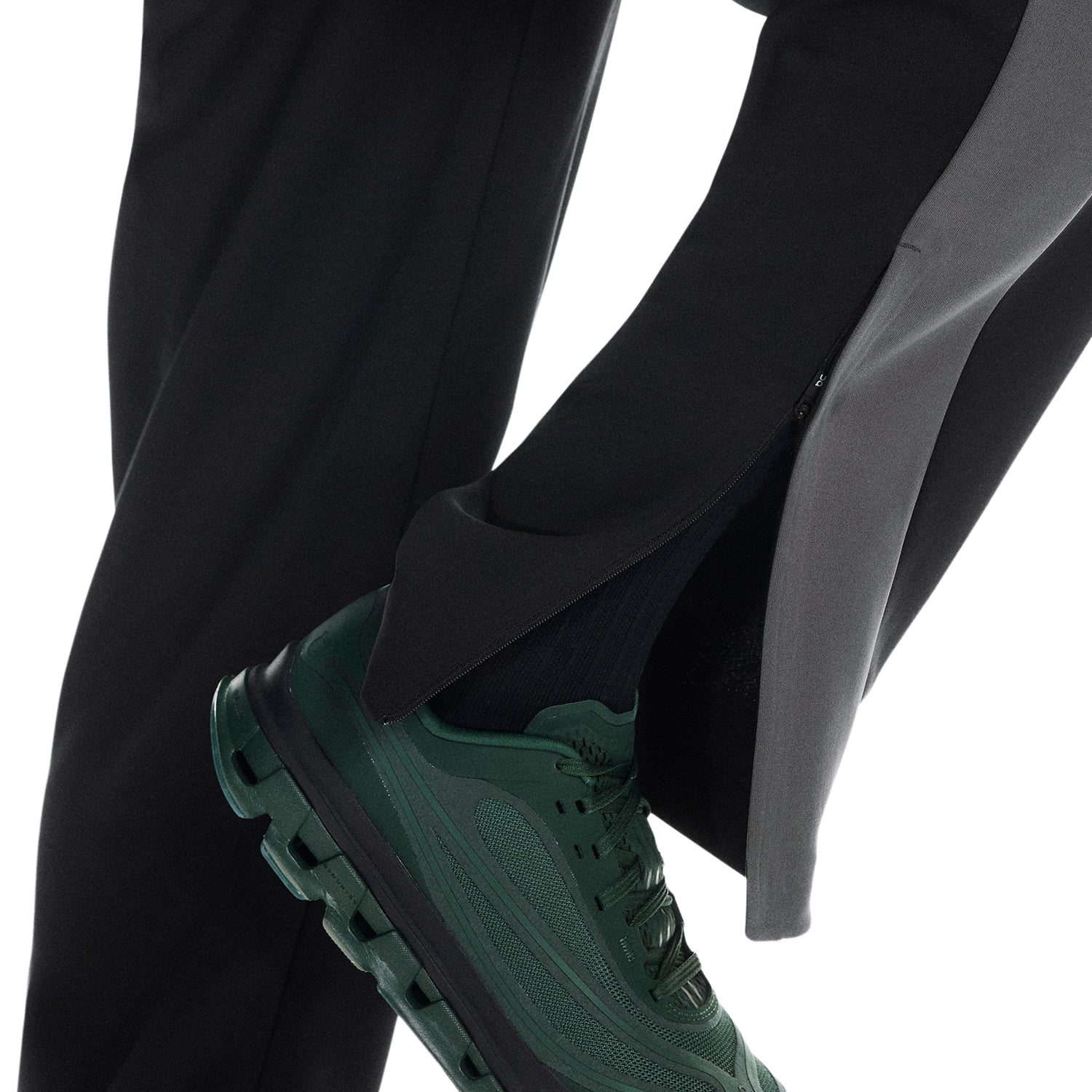 - Side zip at trouser hems